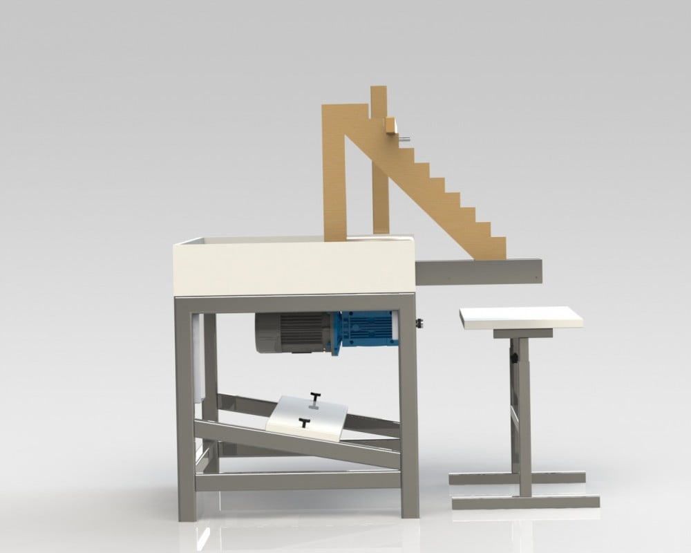 - The device is equipped with a waterproof table with splash guards and a height-adjustable seat.